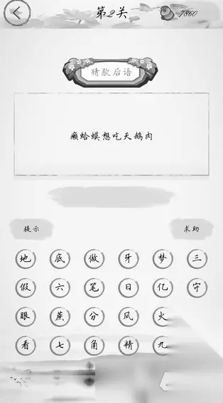 此款作品是围绕着汉字的构成展开的,它会把一个完整汉字拆解成偏旁或者是部首这些基础部件,再结合汉字最初的象形和特点,设计出了趣味十足的解谜关卡。玩家要做的是根据给出来的线索,推理这个字到底是什么,游戏贴心设置了三个难度模式。选好模式之后就可以开启闯关,每通过一关还能拿到对应的奖励,遇到卡关或猜不出谜底的情况,这些奖励就可以兑换提示道具。 》》》》》#全民猜字谜#《《《《《 2、《谜语猜猜猜》