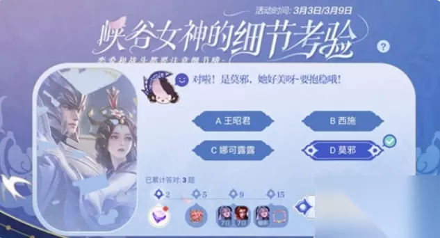 峡谷女神的细节考验:值167块钱的女英雄是谁? 答案一览: 题目:猜猜图中是哪位女英雄呢? 提示:你们好像说她值167块钱? 选项:A、王昭君 B、西施 C、娜可露露 D、莫邪 答案:C、莫邪