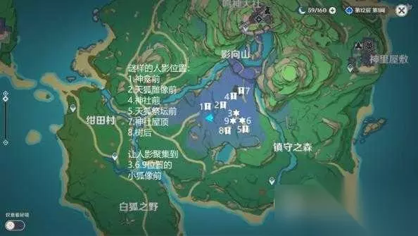 2.在荒废神社中继续调查 谜样的人影的调查地图指引 对话人影1和2,人影去3 对话人影4和5,人影去6 对话人影7和8,人影去9 别和369位置的人影对话 让3个人影聚集在369位置即可