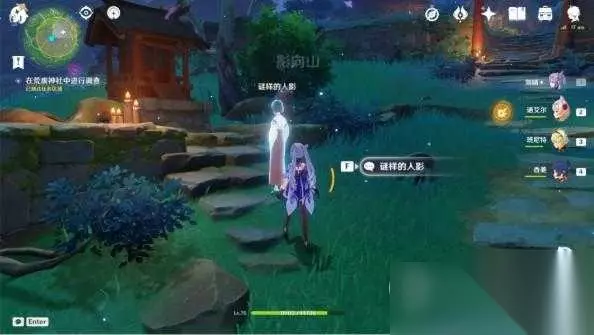 与神社前的「谜样的人影」④对话,获取神社里的雷神瞳