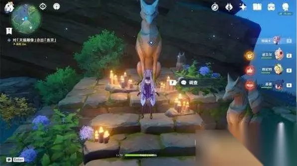 调查神龛旁「地狐」小像,得知口令:「鸣神赦使」 调查神社前「地狐」小像,得知口令:「白辰血脉」 调查树旁石块上「地狐」小像,得知口令:「油豆腐,速速来」 5.对「天狐雕像」念出「言灵」 前往天狐祭坛,调查「天狐雕像」对话