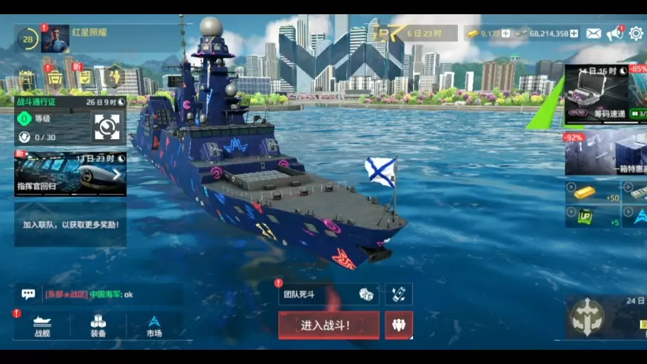 我的现代战舰国服礼包码:HUTUTU666,在游戏中的活动中心右上方小礼盒图标点击输入兑换。