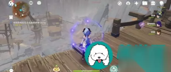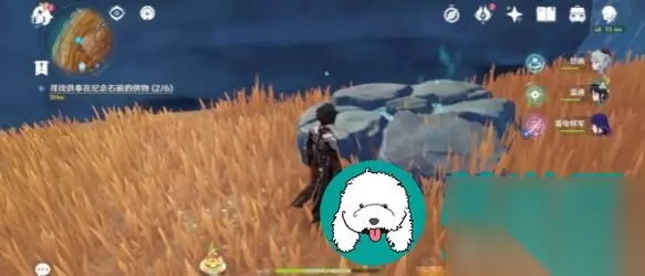 5、岁时之晷 在地图上的几块巨型岩共鸣镇石的靠近传送点图标的方向,跑到这里可以看到一个供桌,前面坐着一个盗宝团成员。