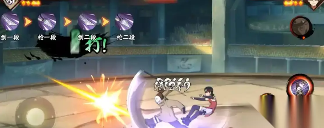 当以枪-剑-剑-枪的顺序释放技能时,荒谷会先持枪突刺,随后跃起甩出长剑旋转攻击地面敌人,在用查克拉线拉回长剑后俯冲挥斩,最后举枪下劈。