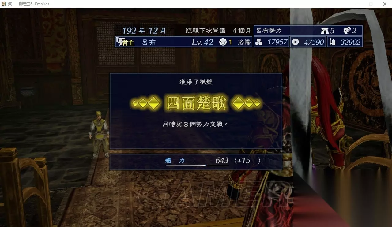 《真三国无双7:帝国》游戏中四面楚歌成就如何解锁?不是玩家还不是很清楚,今天小编就为大家分享《真三国无双7:帝国》四面楚歌成就解锁方法,一起来看看吧。 真三国无双7:帝国四面楚歌成就解锁方法: 选反董卓剧本,人物选吕布,开放所有武器 秘计和等级。一开始全部建城墙,董肥其间让你打一个区域,你照做就行了。等城墙全部建好后就造反。当君主以后不选择任何方针,不停休息,如果地域伤害太大就修复。很快就能刷出来,如果觉得造反难度太高,可以用特典买一些道具(推荐步光之剑 鱼鳞甲和那个增加无双的丹)。