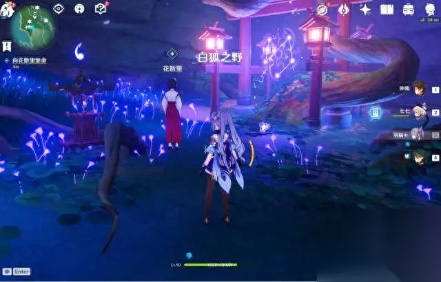 影向祓行 【任务奖励】冒险阅历*400,原石*50,大英雄的经验*5,摩拉*50000。 【任务触发点】完成「神樱大祓·祓行」后自动接取。 【任务流程】 (1)前往影向山底部的裂口,与花散里交谈:传送到鸣神大社,从山顶跳下去,