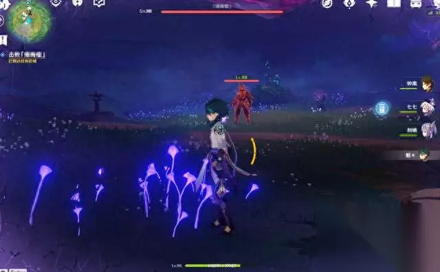 (2)散花里解除封印后,让你跳崖:做好战斗准备,切换好角色,奶妈和药,然后再跳下去,击败「瘴晦瘤」