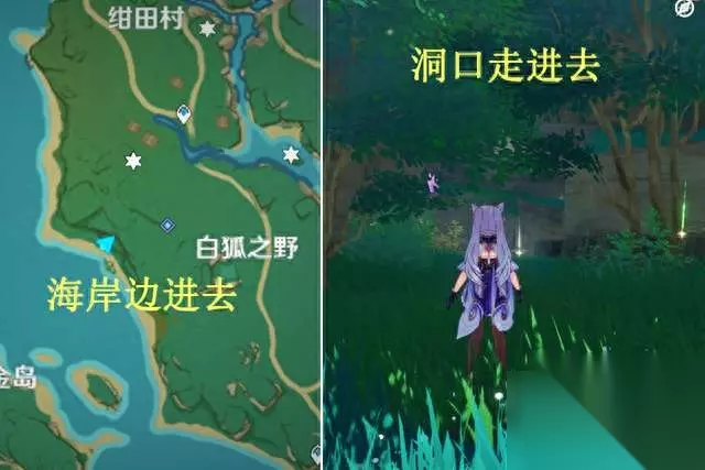 (2)拿到振物,开船前往旁边的小岛,在中间凹出来位置下去看到一个地狐雕像,用留念镜照它,便出现通往地底的隧道,那里面就是结界,