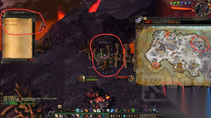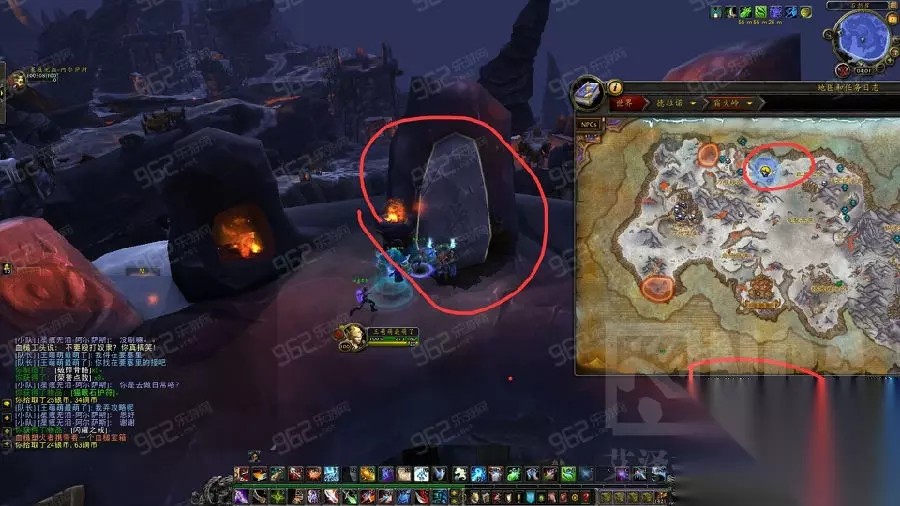 第二步 [戈隆灾星:破碎的长矛] 霜火岭 马戈纳洛克,按照地图上任务标记拾取3件物品即可。 第三步 [戈隆灾星:火之祝福] 霜火岭 石怒崖(42.6,12.6)位置如图。
