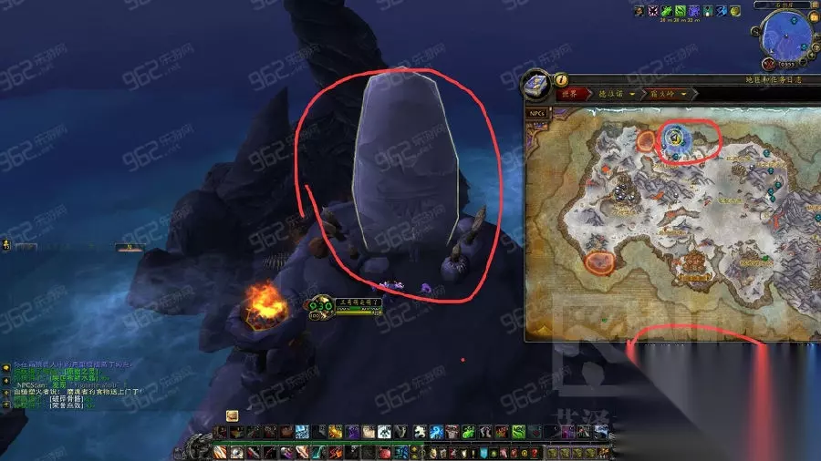 第四步 [戈隆灾星:霜之祝福] 霜火岭 石怒崖(49.2,21.4)高塔顶部,位置如图。