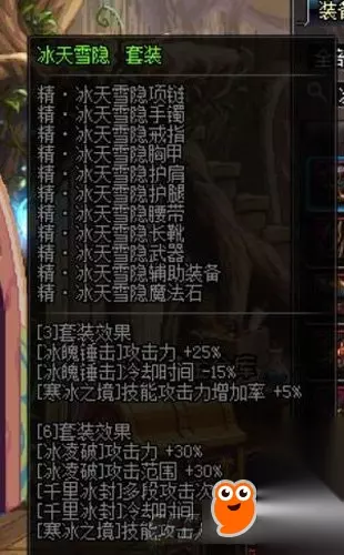 所需的异界套装为远古二的精冰天雪隐六件套,提升寒冰之境技能攻击力的增加率。 武器: