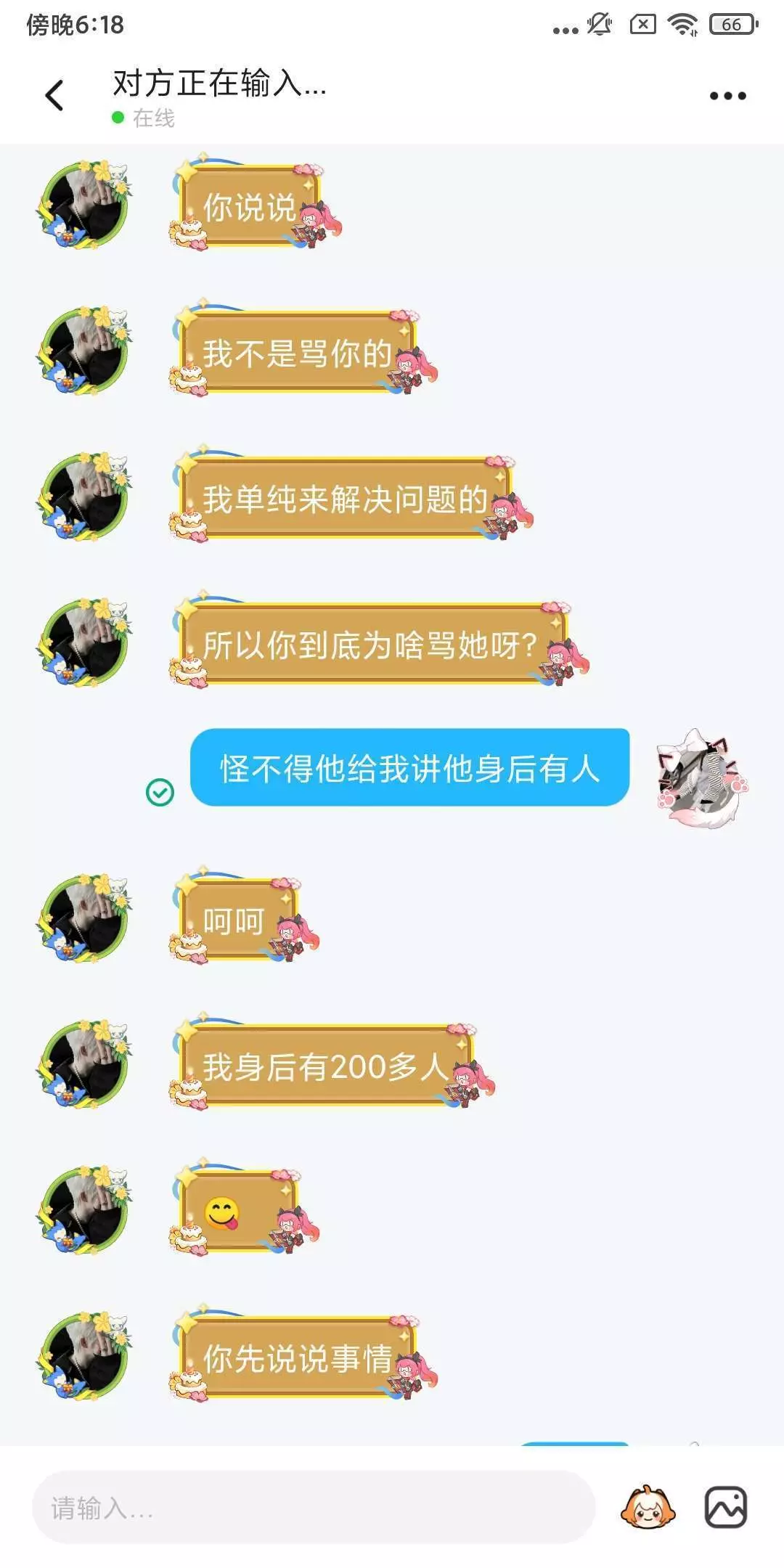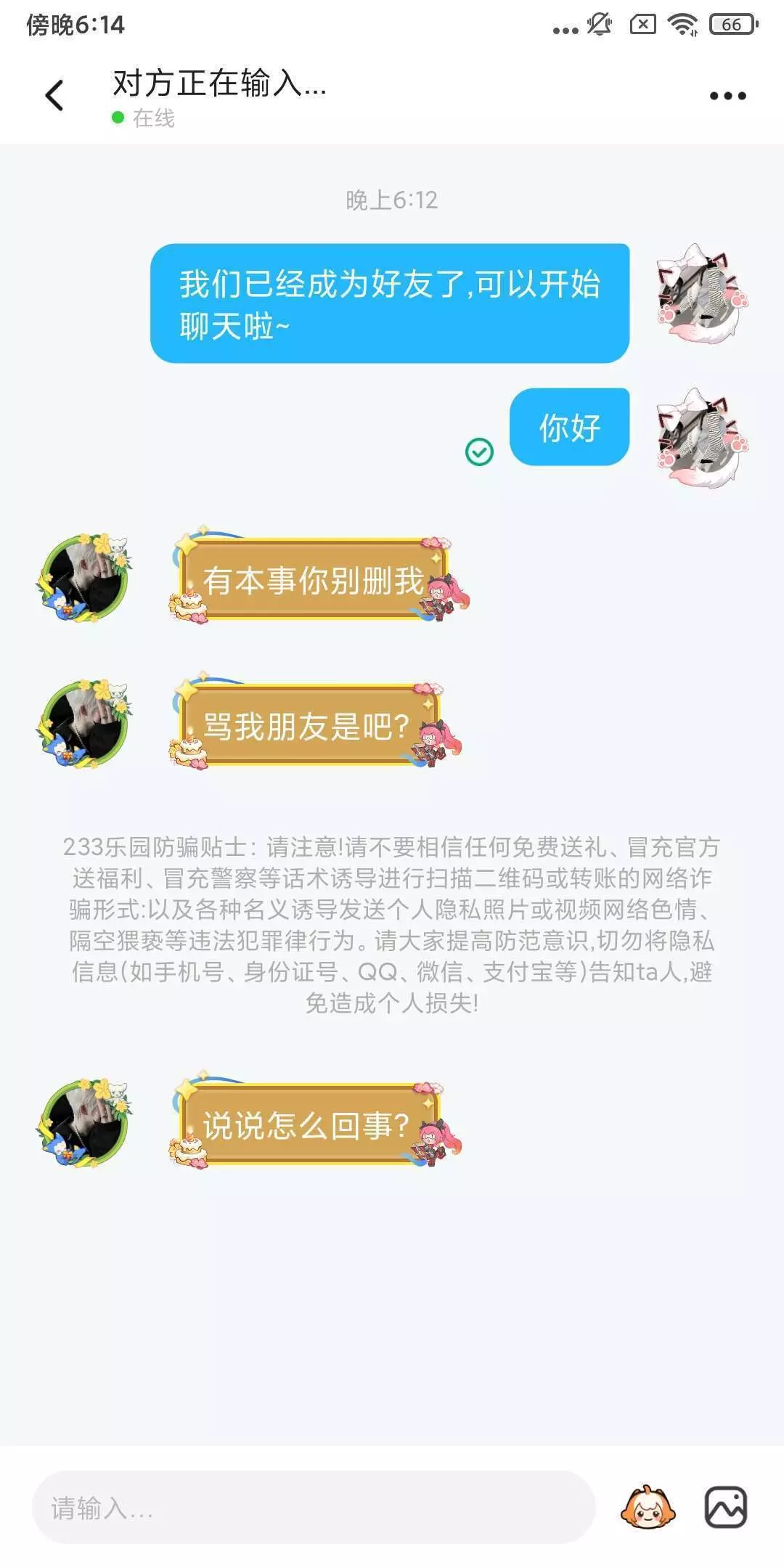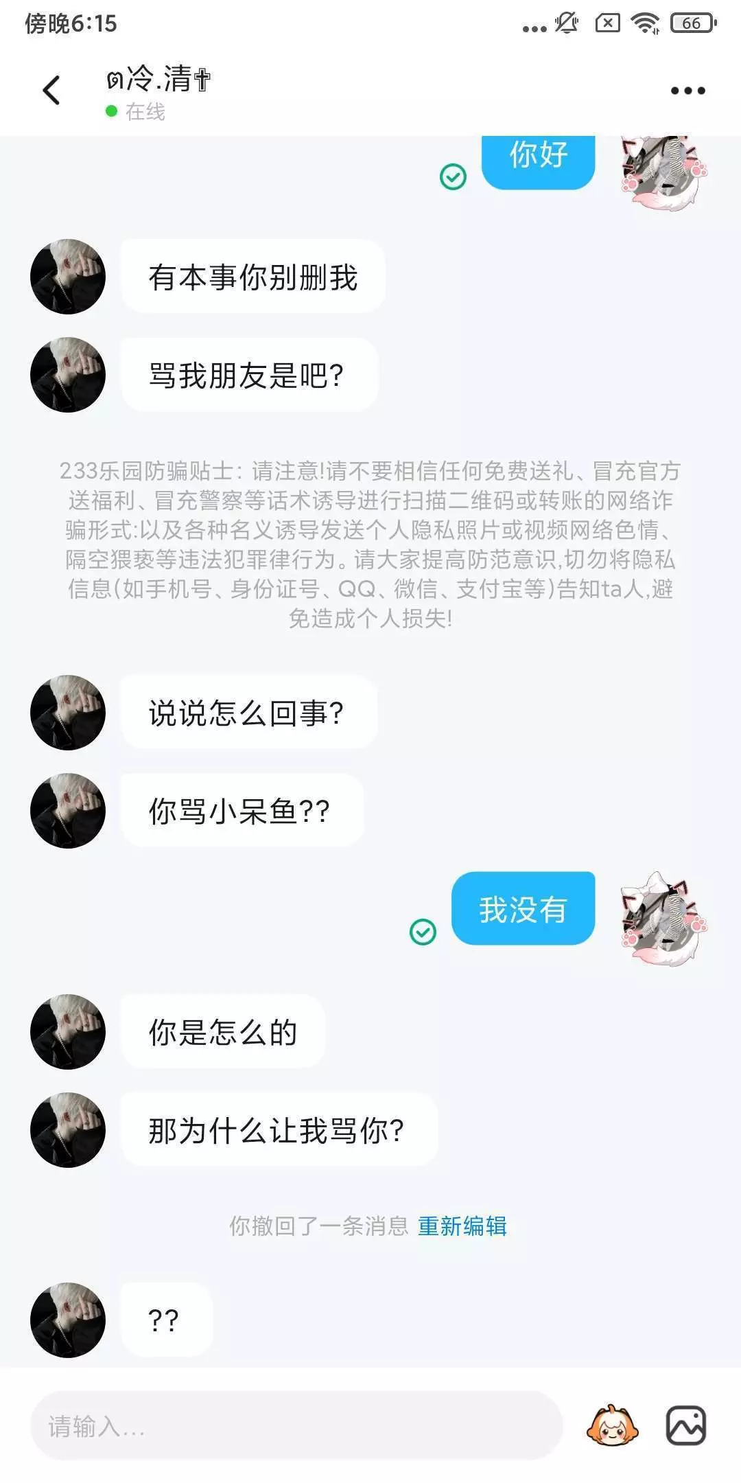 你们来看看这人,这人他有一个好友俩送我好友礼物,然后又然后那个人又说我好友骗他礼物了呀,然后他就叫他好友来加我好友骂了,我就想说一句,你不问清原因你就来骂人,你怎么能这样子呢?我跟你说我已经加你好友了,你给我等着