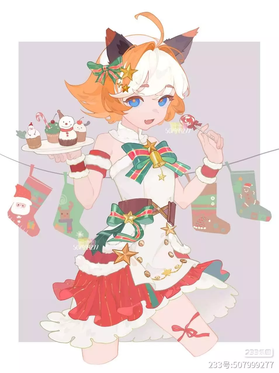 终于画完了毛茸茸圣诞套装和装饰袜子