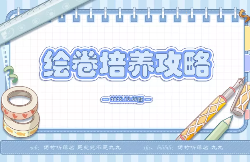 【绘卷培养攻略】——2025.10.08版 本攻略只是图省事不会出错的搭配攻略,如果有个性化的搭配可以在评论区分享。 名词解释: 主绘卷:效果绘卷,属性及绘卷效…