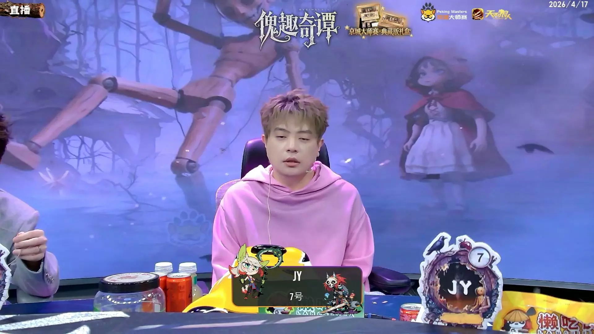 JY戴士(京城大师赛)直播 ————本期内容———— 周二(4月14日)嘉宾:JY 小苍 KS 牛肉干 鲸鱼 李斯 陈俊洁 陈明峻 鬼鬼 翼风 彭彭 章亿阳 法官:辉少 解说:妹妹 李舒服 板子:预女猎白混、诡术之境、机械狼通灵师 ————直播时间——— 【JY戴士(京城大师赛)】 2月24日起,京城大师赛第21季傀趣奇谭,每周二至周五晚上19:30不见不散! 往期精彩对决请至主页查看合集~ ☺▶豆:JY戴士(京城大师赛)| 歪歪的生活日记 ☺♥ B站:JY戴士是我 | JY戴士后援会 ☺♣ Vb:JY戴士 | JY戴士的小花卷 ☺♣ 书:JY戴士 | JY戴士的小花卷 | 萌狼学院 ☺▶网Y云音乐:狼王JY直播 ☺▶JY宇宙|节目:White Night(不眠之夜) 【京城】京城大师赛 | 京城龙门赛 | 京师公开赛 | 京师宝宝赛 | 京沪表演赛 【沪上】沪上小师赛 | 沪上宝宝赛 【杭城】杭城小师赛 | 杭城宝宝赛 【粤城】大湾区小师赛 【其他】京师之猫鼠派对 ☺▶JY宇宙|小黄车:京师甄选