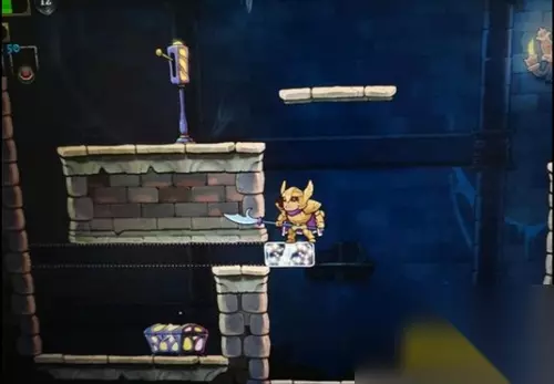 要通过谜题挑战,首先要清楚透明砖平台的原理:只要玩家角色落在一块透明砖上之后不跳跃,透明砖平台就会一直维持在固定位置,跳跃之后它才会重置。 所以要利用这个原理,也就是先踩实右边的透明砖,然后在不跳跃的情况下抵达房间左边即可。 需要注意的是一定不要手贱把屋里的箱子打掉,不然没了借力点就肯定拿不到宝箱了。 上图玩家的位置,踩出台子以后不要跳,否则透明台子会重置,冲刺到右侧回旋踢踢箱子拉高身位再冲到左边,直接走下去, 一般的方法是先冲刺到右边,然后用回旋踢踢爆箱子,弹跳上去,再下踢上面一层的箱子,最后往左边冲刺即可。 但是更简单的方法是用射手职业,先弹射到第二层平台,然后再用炸弹蹿升后再往左冲刺。这样就可以避免失误。所以建议不太擅长连续操作的朋友用射手来通过这个谜题。 PS:如果你在已经拿到阿南克的披肩(空中冲刺的传家宝)后再来做这个挑战,会简单很多。