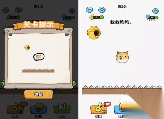 里面除了有一只长相特别可爱的小狗,也会遇到一只会蛰狗狗的蜜蜂,通过一笔画线的方式,形成了形状以后营救狗狗,避免被蜜蜂叮,也是属于玩法特别的有趣,需要在玩的时候发挥完整的想象力,才能在指定的关卡当中完成任务的。如果并不知道如何划线,才能拯救狗狗的情况下,还有相应的提示功能或者是使用钥匙跳过。 高速下载 普通下载 优先233乐园APP下载 5、《勇者一往无前》