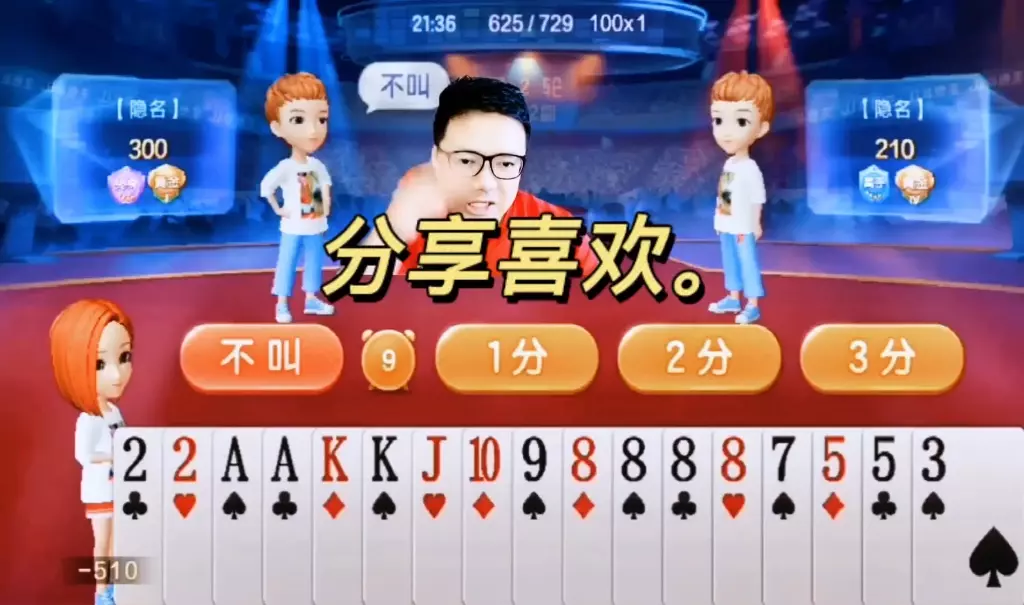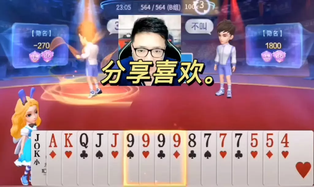 三岁玩牌破釜沉舟四个3的大胆一炸后期残局细腻的行牌为自己争取到了胜利!