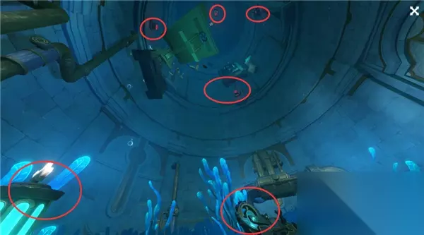 侧门开了后我们来到水里启动这个机关;