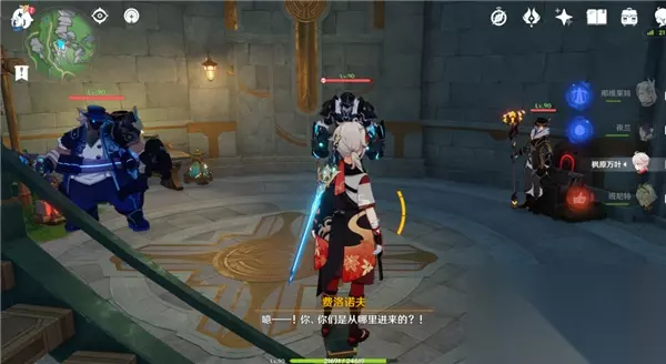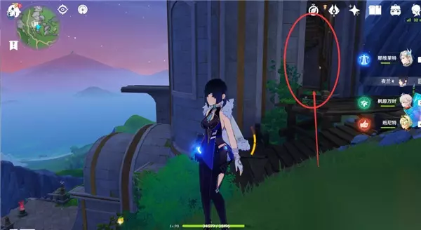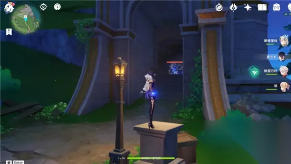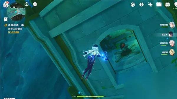击败愚人众后我们上楼到第3层至第4层的中间,发现有屏障挡住了我们的路;