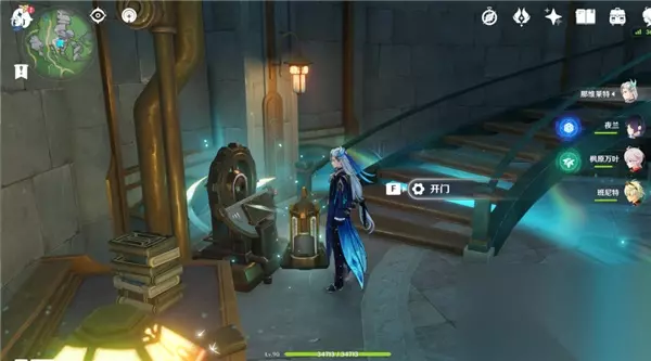 设法给研察终端充能,把机关怪打败后普攻这个蓝色的机关即可开门;