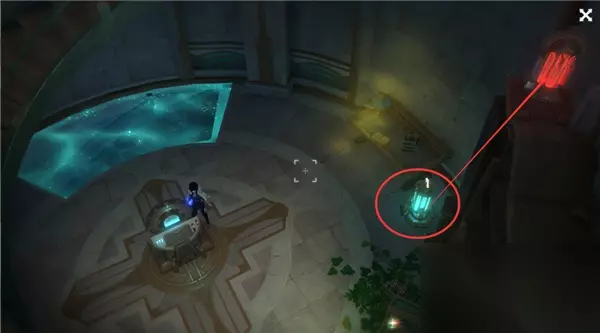 如图所示进行机关解谜,启动机关后当机关上的指针对着亮着的区域时,我们使用普攻打装置即可;