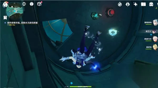 操作研察终端获取水文研究数据,接上能量之后我们直接从顶部回到主控制室;