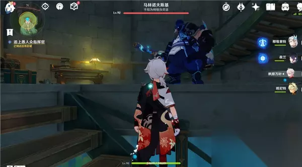 继续从上层的出入口出来,跟着指引追上愚人众指挥官;