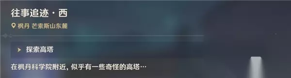 原神4.1版本的新世界任务往事追迹大家都完成了吗?还没有完成的旅行者也不用担心,小编已经为大家带来了往事追迹任务攻略啦,还不清楚往事追迹任务怎么接的旅行者赶紧来看一看吧,任务流程都已经清晰整理出来了! 原神往事追迹任务攻略 1、往事追迹任务需要我们解开西、北、南三座高塔的解谜,其中南方的高塔还需要触发一段对话才能接取。