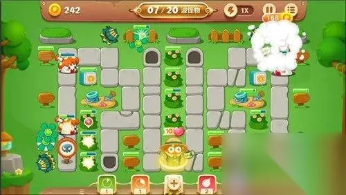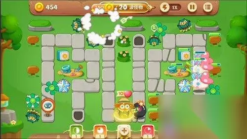 游戏中期的怪物还有有点难缠的~阿波犯了个错误,没有早早的建造减速的冰冻星,导致好几次差点被怪物吃掉,不得已阿波交了炸弹道具,所以萝卜丝们在10波左右要早点建造冰冻星炮塔哦,这可是阿波血的教训换来的情报。