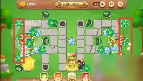 阿波有话说 起手是很重要的,前期可以在上面或者怪物出口建造2个多重箭炮塔,清理完中间障碍物后,迅速补充冰冻星炮塔,可不要像本关的阿波哦,迟迟没有建造冰冻星导致好几次差点被吃掉。之后就是早点把隐藏炮塔打出来并升级,由于金币很少,萝卜丝们要用好每一枚金币哦~
