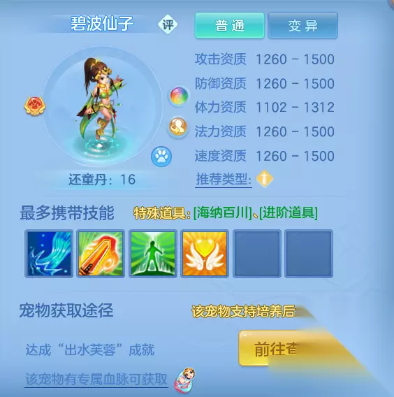 幻唐志:逍遥外传【宠物攻略篇】——碧波仙子打书攻略分享如下: 作为完成成就即可获得的特殊宠物,碧波仙子在拥有稳定伤害的同时,还有不错的防群伤效果。在前中期是一个相当具有性价比的选择。