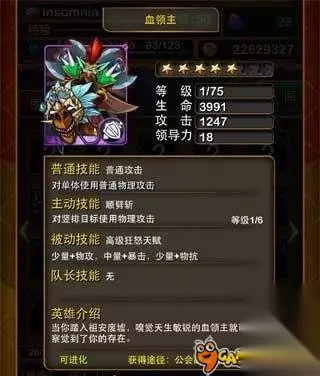 血领主拥有全新的技能顺劈斩,效果为对竖排目标造成物理伤害(类似发丝的冰锥术),而被动技能方面,血领主是狂怒天赋的战士,拥有少量+物攻、中量+暴击,少量+物抗的被动属性加成。 目前血领主的获取方式是通过祖安废墟(中层)掉落的血领主碎片合成,合成一张血领主需要500个碎片。