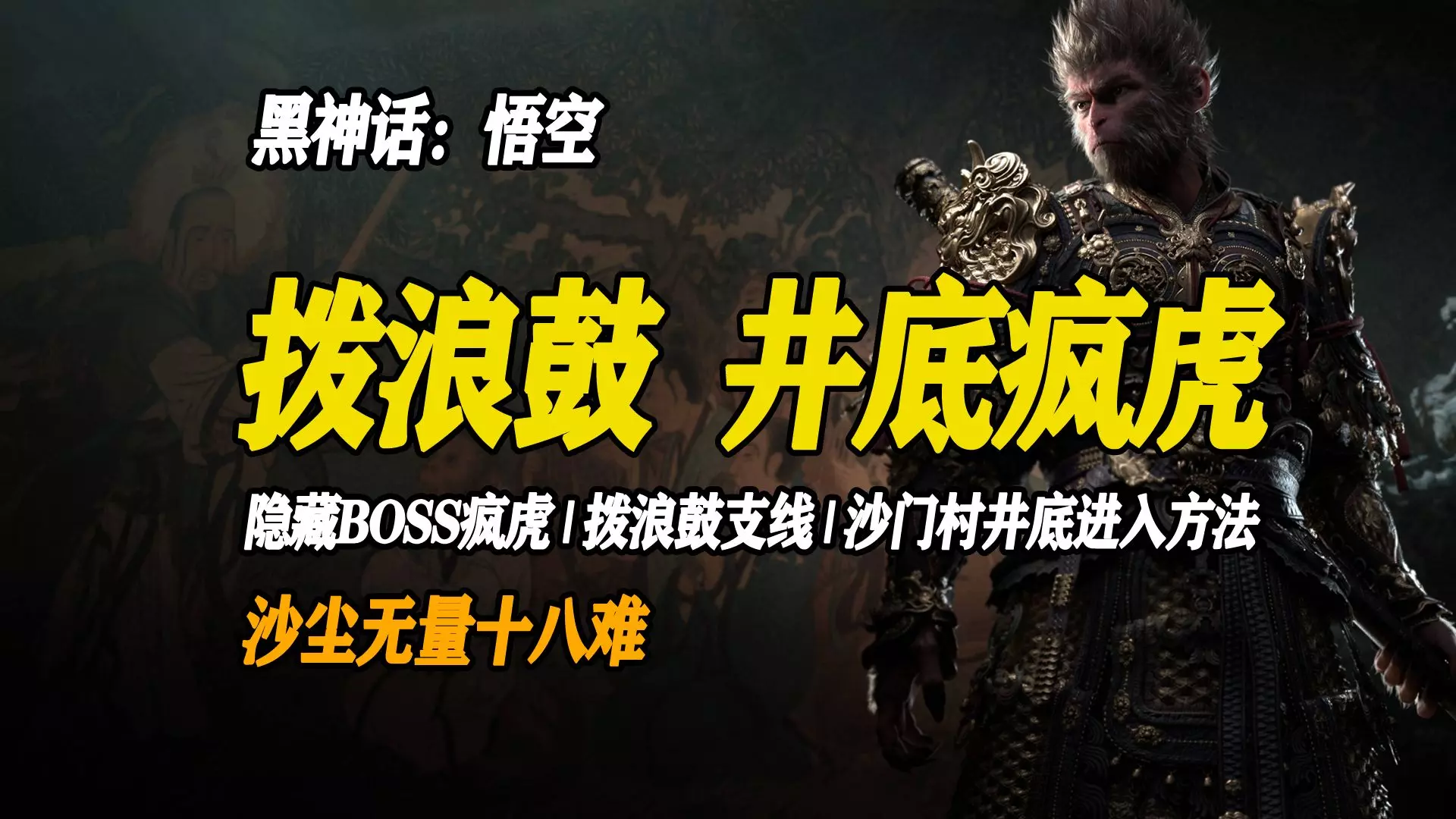 「黑神话:悟空」“轻松玩转”第二回:风起黄昏04-黄风阵(完结)|击败隐藏boss“头目·疯虎”|抵达隐藏区域“沙门村-井底”|完成“拨浪鼓”支线
