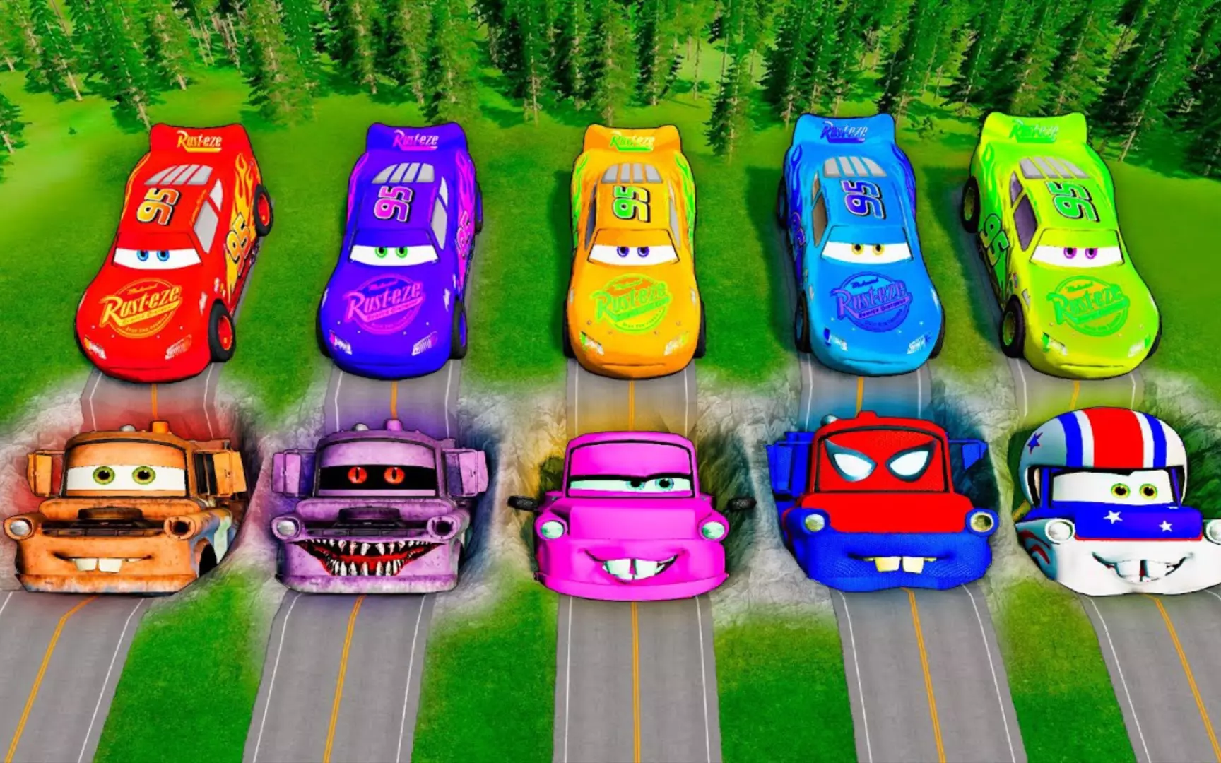 这是一则BeamNG车祸模拟器的搞笑内容,展示了麦昆造型的车辆挑战各种轮胎陷阱,过程中车辆出现碰撞、损毁等趣味场景,给玩家带来欢乐的模拟体验。