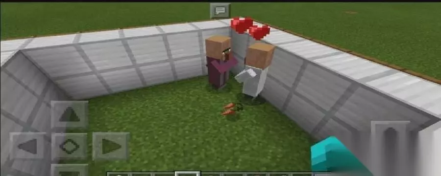 也可以搭一个7*7高2格的边框,目的就是把村民围起来,接着在四周放上木门,可以是其他木头门。直接对着放门是不行的,应该要背对着围墙,然后点击下方的地板,这样木门就会贴合围墙,全部发完之后,接下来当然是让村民进去了,创造模式可以直接用村民蛋放两只村民进去,和繁殖动物差不多,繁殖牛牛需要给它小麦,导致鸡需要给它小麦种子,而导致村民需要给它12个胡萝卜或者马铃薯,3个面包也是可以的。把胡萝卜移动到下方的快捷工具栏里,然后长按扔出去,村民就会自己过去捡了。当其中一个村民的背包满了,他就会和其他村民分享,两个人慢慢地走在一起,然后小村民就生下来了。