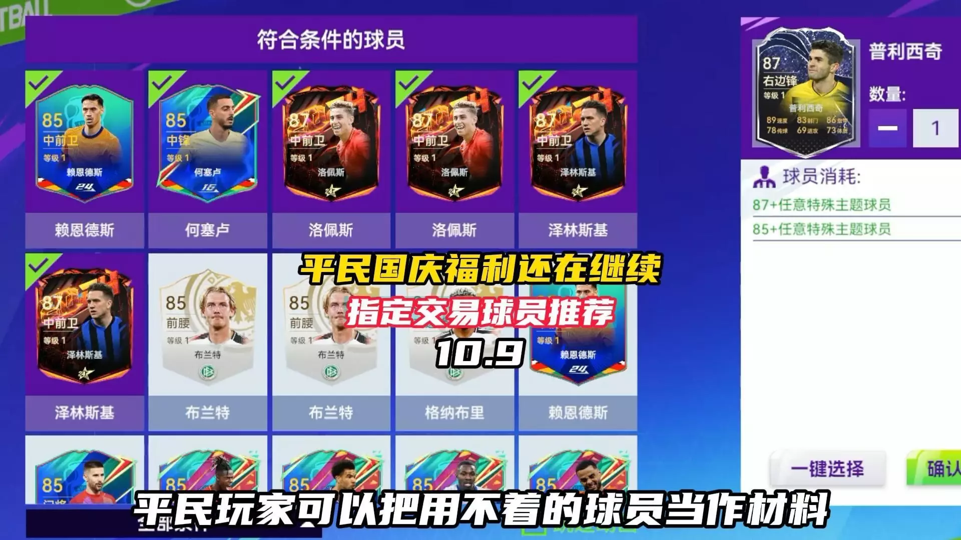 这是《最佳球会》8.5的指定交易球员推荐帖,推荐了京多安、热苏斯、迪马利亚、姆巴佩等多名高评分球员,还建议平民玩家可将闲置球员当材料,兑换实战好用的平民级毕业球员。