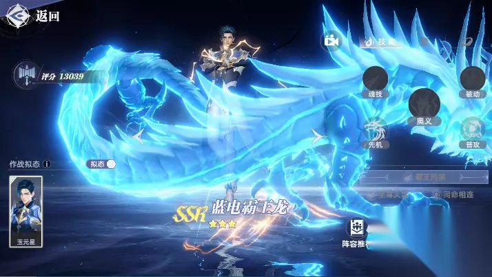 蓝电霸王龙可以给到攻击、防御、生命力、精神力方面的加成,精神力可以理解为法攻。然后是看技能,普攻5段,倍率不错,攻击距离适中。先机技,则是在目标位置召唤霸王龙,攻击并牵引范围内的目标然后降下落雷。