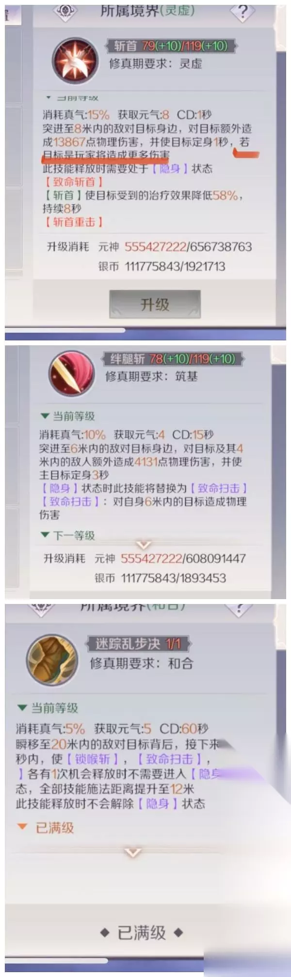 2、PVP玩法、我一般情况的连招,技能自带突进。隐身-斩首(打人更疼),绊脚斩(留人),狂乱斩,谜踪步(刷一套强化隐身技能,依次按完就行了) 然后疾风刺开溜等隐身,有元可以继续隐身,反正隐身的技能后都用斩首。