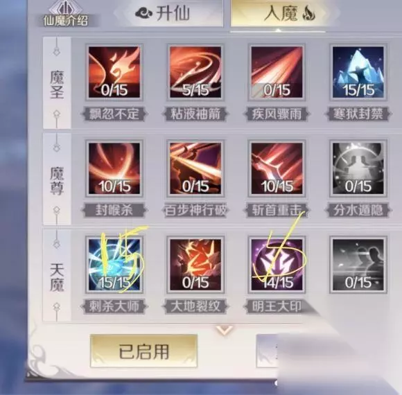 4、魔加点(无稀有),如下图,融入幻影增加隐身时间 没啥用 3分钟就够用了 点满5分钟。说几个为啥要点满的,致命斩首:点满80%减治疗,很强。粘液袖箭:点满降低80%移动速度! 10级以上还增加封印时间。