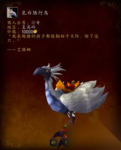 任务步骤: 1,将它升到25级。 2,带它到你阵营的主城逛逛。 3,用它击败3个特定的野外宠物(是野外随处可见的宠物)。 4,在特定地点召唤它,完成5个世界任务(基础四张地图的世界任务)。 5,带着它完成3个宠物世界任务。 6,带着他完成1个稀有精英世界任务(蓝色带着金龙框的任务)。 7,用它击败3个特定的野外宠物(也是野外随处可见的宠物)。 8,带着它完成3个pvp世界任务。 9,在达拉然买东西给它(同时获得玩具)。 10,带着它和特定的2个同类宠物,击败3个特定的野外宠物。 11,带着它击败地下城首领(任意难度)。 12,带着它和特定的2个同类宠物,击败3个特定的野外宠物。 13,带着它战胜团本首领(四个宠物任务分别是梦靥的萨维斯、乌索克,暗夜要塞的克洛苏 斯,斯考匹隆)。随机可完成 14,带着它和特定的2个同类宠物,完成3个宠物世界任务。 15,带着宠物回老家(就是你开始得到宠物那个坐标,同时获得坐骑!) 在完成上述其中一个雏龙升级到坐骑的任务后,即可到【至高岭】地图,坐标:32 67找鹰身人NPC-艾维娜处,开启声望【复仇之爪】,崇拜后可在附近的渡鸦处(女猎人雕像脚下)购买一只坐骑。