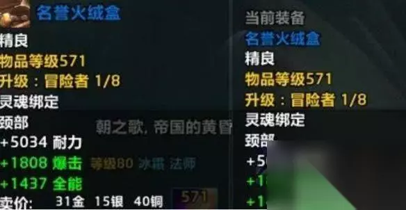 6、如果玩家获得了4条属性的火绒盒,将其升满之后战斗力甚至能够超过装等630的项链,唯一的缺点是耐力只有630项链的一半。
