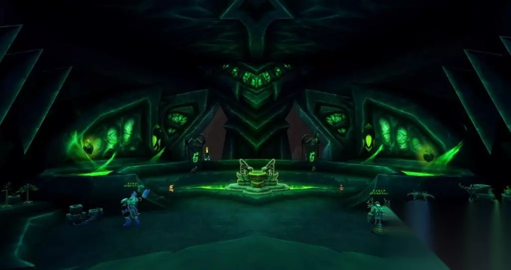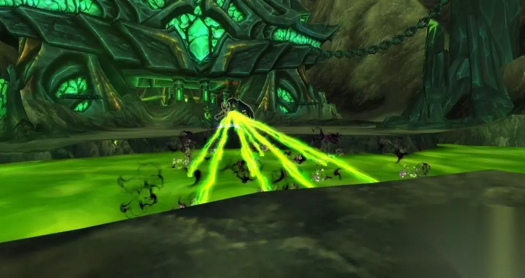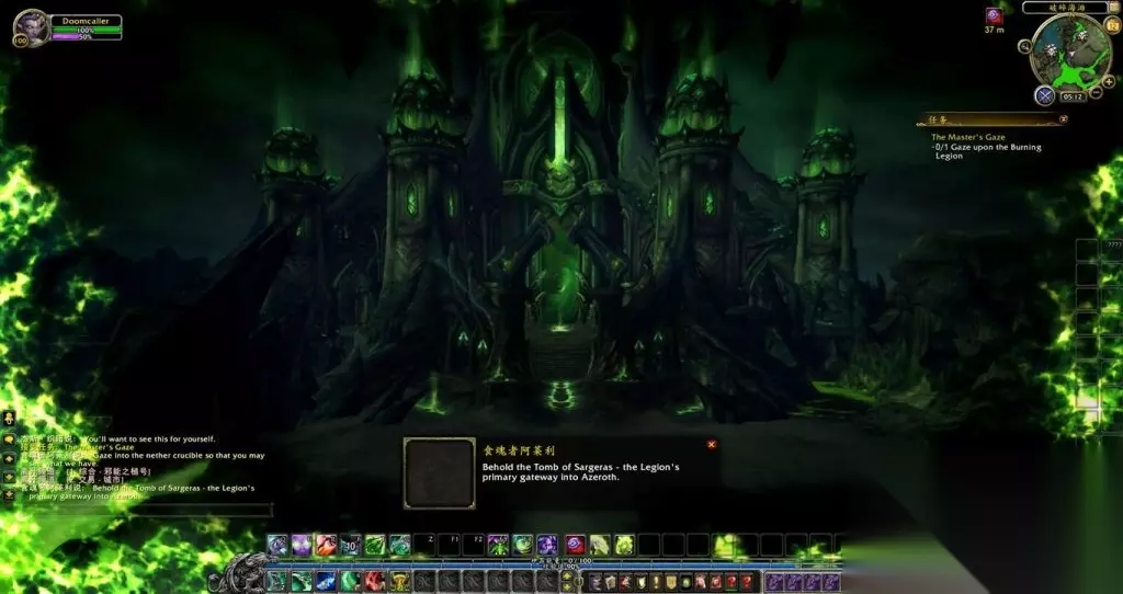 我向坩埚里看去,恶魔的血液在其中翻滚沸腾,散发着邪能的恶魔灵魂漂浮在血液表面。我开始看到一些模糊的影像,跟着变得越来越清晰,直到一座巨大的建筑出现在我眼前。我看到的是萨格拉斯之墓,黑暗泰坦肉身的所在地,也是燃烧军团在艾泽拉斯的主要传送门。