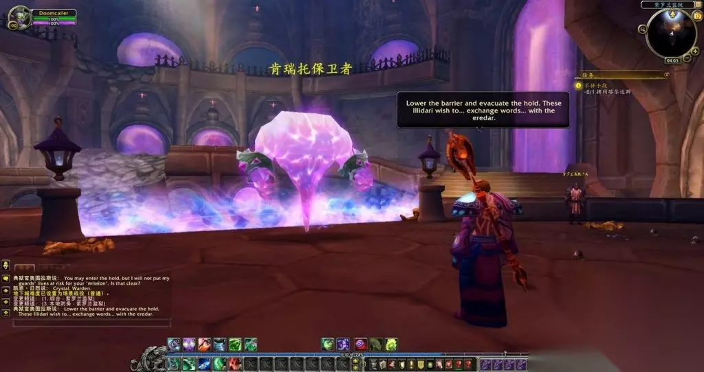 [ 第三章 重生的伊利达雷 ] 经过漫长的岁月,我们终于离开了守望者地窟,重获自由。玛维独自去追缉古尔丹了,但我并不为她担心。那个暗夜精灵的本事大的很。大法师卡德加的传送术将我们带到了达拉然,随后在他所谓的“肯瑞托议会”上将如今的形势对我进行了说明。大敌当前,我同意与他的达拉然进行合作,共同对抗燃烧军团的进犯。 我走出紫罗兰城堡,考瓦斯·血棘向我传达了凯恩·日怒的口信,后者请我立刻到克拉苏斯平台与他碰头。临走前考瓦斯还小声提醒我军团的耳目无处不在,我必须尽快行动。