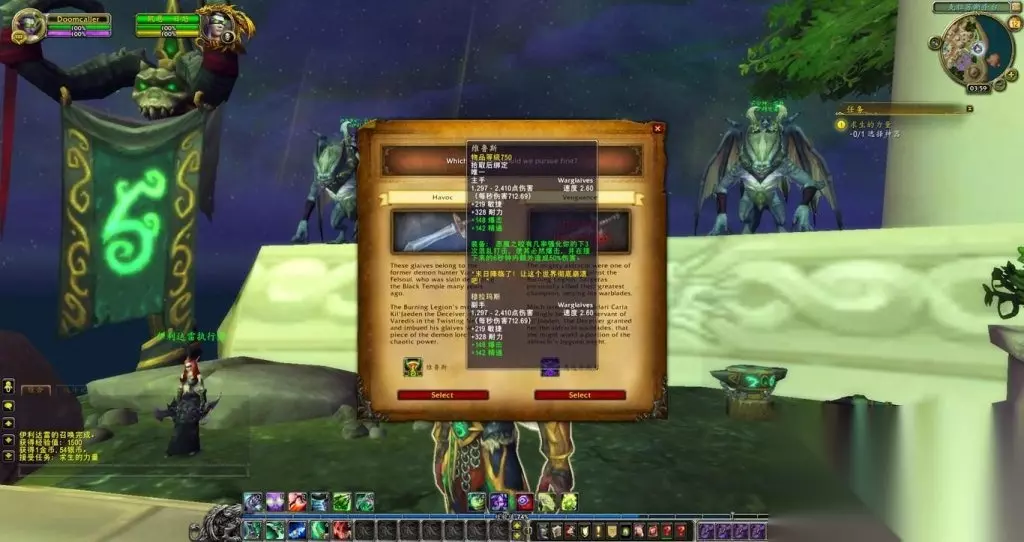 我来到克拉苏斯平台,凯恩迎上来向我报告。就他的说法,过去我们长期依赖伊利丹大人的力量去消灭军团中最强大的战士,如今我们失去了他,很多人担心我们该怎样做。但凯恩也带来了好消息。我们发现了两副武器的线索,据说可能比伊利丹大人的埃辛诺斯战刃还要强大。凯恩表示若行动迅速,我们有时间能获得其中一副,从而大大增加我们对抗军团的能力。至于哪一副武器值得我们下手,凯恩把决定权留给了我。