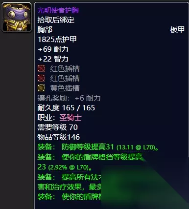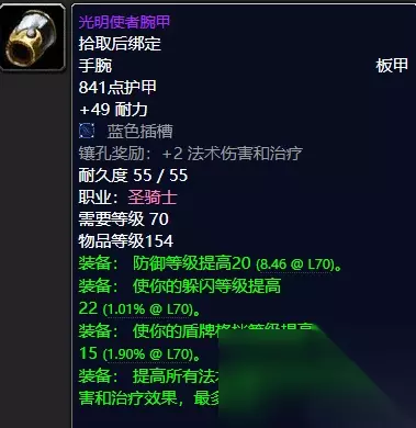 光明使者护胸 英勇仲裁者胸甲系太阳之井高地BOSS穆鲁出品。 光明使者护胸圣骑士T6套装胸部装备。(黑暗神殿终极BOSS伊利丹怒风掉落) 对于后期来说的话我们英勇仲裁者胸甲绝对是你走向巅峰必不可少的装备了,超强耐力血线保障;超高防御以及躲闪免暴必备;高端法伤让你稳妥拉怪无后顾之忧。而对于T6的光明使者护胸,人家光明使者都穿,你为何不穿,强就对了,推荐指数统统满天星辰直戳天花板。 ⑥护腕:光明使者腕甲