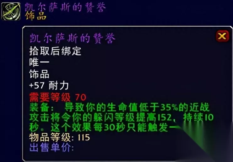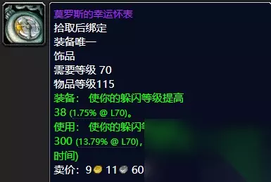 莫罗斯的幸运怀表 影月徽记系黑暗神殿BOSS古尔图格·血沸出品。 坚硬的纳鲁薄片系太阳之井高地BOSS穆鲁出品。 凯尔萨斯的赞誉系英雄模式魔导师平台BOSS女祭司德莉希亚出品。 偏移甲虫系毒蛇神殿BOSS不稳定的海度斯 (水流公爵)出品。 莫罗斯的幸运怀表系卡拉赞BOSS莫罗斯 <管家>出品。 五款经典防御向饰品推荐给大家,当然很多玩家对于这款凯尔萨斯的赞誉以及我们的莫罗斯 的幸运怀表的乱入可能有点凌乱,但是懂行的玩家已经在为喵叔竖起了大拇指啧啧称赞了,确实啊这两款饰品在SW的布胖面前可是有奇效的,而且后期很多高端的防骑追求极致的高端血量所以加持57耐的凯尔萨斯的赞誉就必然不可少了,这时候普通玩家恍然大悟瞬间为喵叔啪啪啪啪啪啪的鼓起了掌,谢谢你们,谢谢你们这些普通玩家的掌声,喵叔感受到了啊! 至于其他三款的话喵叔个人还是比较不喜欢用这个坚硬的纳鲁薄片感觉有点鸡肋,当然喵叔后期也真的没用过这东西虽然玩过防骑,所以只能说从侧面很多玩家哪里了解到这个T用的薄片真心一般,当然你有什么更好的简介也可以评论区留言与喵叔我探讨一二的。当然上述的几款饰品的使用其实还是在于装备的搭配上来自我选择,没有绝对二字。 经典饰品,值得推荐,推荐指数统统满天星辰直戳天花板。 ⑬各色武器、群英荟萃