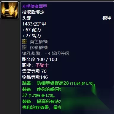 时光荏苒,魔兽世界怀旧服已经进入了P6阶段,而我们的玩家也在纳克萨玛斯之中夜以继日地奋斗着,只为了那属于我们的特殊荣耀!一路走来,你是否已经攻克了我们60版本最强的NAXX了呢?还是说你依旧在为着那份久违的荣耀而奋斗,无论如何,我们也一路带着情怀走过了这一段看似漫长的旅程,而魔兽世界的历史长河已然悠久,那么今天就让喵叔带大家一起再次去回忆一下那些年我们TBC时期的毕业级巅峰装备之“防骑篇”。(喵叔推荐的装备,仅供参考,如果你们有补充的也欢迎留言与喵叔分享,谢谢!) ①头部装备:乌瑟尔的决心之盔、光明使者面甲