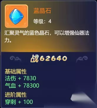 晶石: 颜色为;红色、蓝色、紫色、黄色 蓝色晶石提升法伤 紫色晶石提升速度 赤晶石;伤害/命中 蓝晶石;法伤/气血 黄晶石;防御/速度/闪避 紫晶石;法防/速度/气血