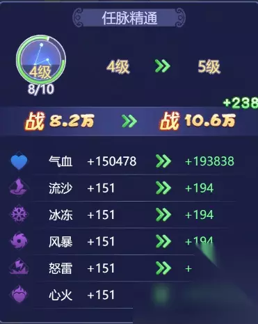 经脉 任脉提升法伤; 督脉提升伤害。 任脉每阶段精通加特殊属性;